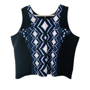 Lane Bryant Black Blue Geometric Sleeveless Blouse Back Zipper Size 22/24