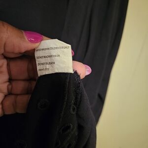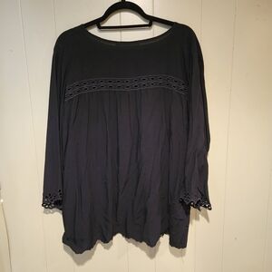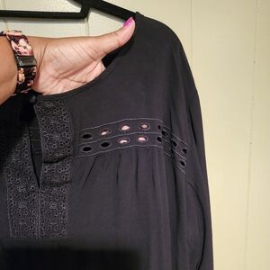 Elevate your wardrobe with this gorgeous Solitaire black tunic top, perfect for effortless everyday elegance. Crafted for comfort and style, this women’s size 1X top features intricate eyelet embroidery across the neckline, sleeves, and hem for a delicate boho-inspired finish.