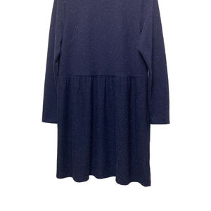 NWT Loft Babydoll Navy Flecked Button Back Swing Knit-Jersey Dress Women’s LP Girl Girly Light Academia