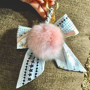 BRAND NEW KEY RING FOX FUR SILKY BOW