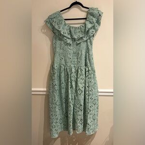 Asos Design One Shoulder Midi Dress Sage Green Patched Lace Eyelet Size 12