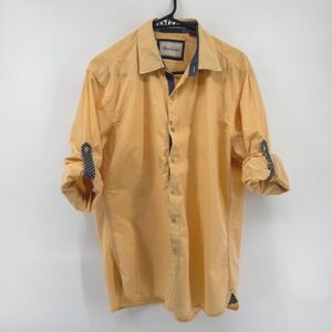 Robert Graham Mens Peach Tailored Fit Long Sleeve Button Up Long Sleeve Shirt L