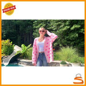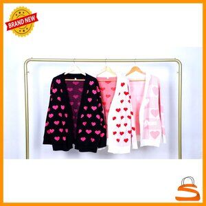 Brand new and ready to love — this charming heart print cardigan offers a cozy, relaxed look perfect for Valentine's Day, casual outings, or adding a sweet touch to your everyday wardrobe. The knit is soft, lightweight, and incredibly comfortable.