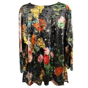 Calessa Tunic Top 1X Bright Floral black Velvet Burnout Stretch Boho Hippie