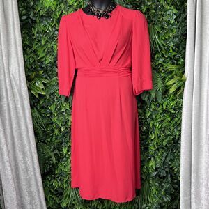 NANETTE LEPORE Dress Women 12 Coral Red Pleated Waist Midi Round Neckline 2034