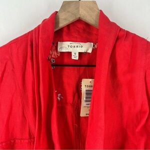 Torrid Coral Linen Blend Drape Front Woven Drawcord Waist Utility Vest