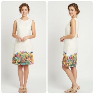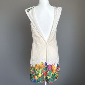 Desigual Cream Lace Sleeveless Colorful Hemline Sheath Dress Size 40 EU / 6 US