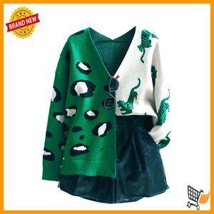 Leopard Print Cardigan V Neck Button Down Sweater Y2K Chic Oversized Boho Style