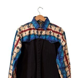 VINTAGE 90S WILD WEST DESIGN AZTEC SOUTHWEST WESTERN SHIRT L USA