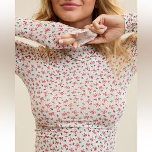 Aerie Superchill Modal Rib Long Sleeve T-Shirt Christmas Holiday Soft Muslin