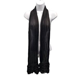Chico's Chiffon Scarf Crinkle Textured Trim Black 62" Long Unique Event