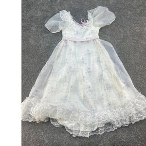 Keywords: Girl Dress, Special Occasion, Flower Print, Lace Trim, Puff Sleeves, Party Dress, Recital Outfit, Formal Wear, Vintage Style, Childrens Fashion, Ballerina Dress, Pageant Dress