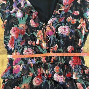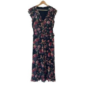 Paige Paradis Ruffle 100% Silk Floral Midi Dress M Dark Romantic Wedding Guest