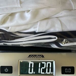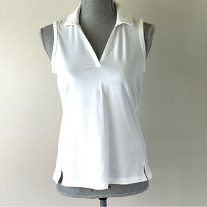 New with tags. Two-piece women’s active set including a white sleeveless collared Tommy Bahama Everyday Active top and a navy-and-white striped athletic skort. The top features a soft performance fabric with a V-neckline, side vents, and a comfortable stretch fit. The matching skort has a flattering A-line cut with horizontal and angled stripes for a sporty, stylish look. Both pieces are new with tags.