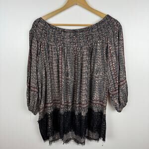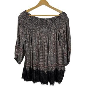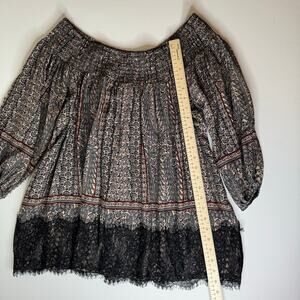 Vanessa Virginia Anthropologie Womens Lace Trim Off the Shoulder Tunic Top Sz M