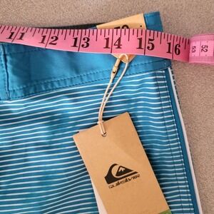 Keywords: Quiksilver, Highline, Surf Silk, Board Shorts, Swim Trunks, Swimwear, Mens, Blue, White, Striped, Beach, Pool, Summer, 20 inch, Surf