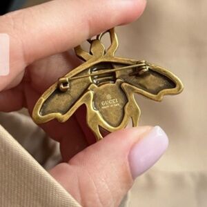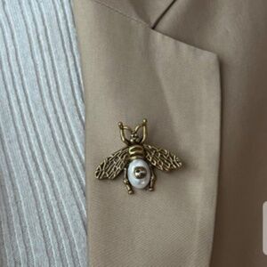 Stylish bee brooch decorated with pearls and monogram can be supplemented with earrings
