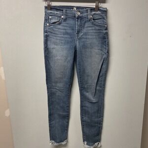 7 For All Mankind Ankle Skinny Jeans Frayed Hem Blue Denim Size 25