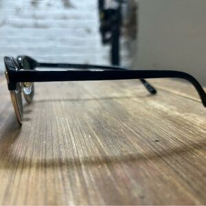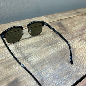Trendy sunglasses with black frames and gold accents. Perfect for any occasion.