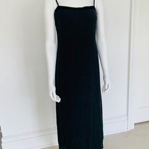 100% Silk sexy strap Dress with velvet trim on top and on the hem. Fully lined with side zipper.