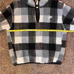 Warm Nike sherpa pullover with checkered design. Features a half-zip front.
