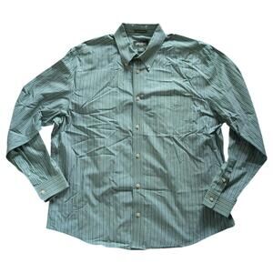 Eddie Bauer Shirt Mens XL Green White Striped Button Down Wrinkle Resistant Cotton