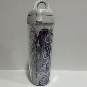Stylish tumbler with a blue octopus design. Durable and perfect for drinks on the go.