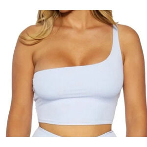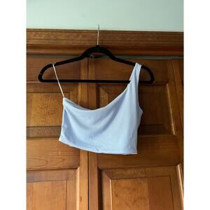 NWT Naked Wardrobe Women's One Shoulder Crop Top Periwinkle Light Blue Size M