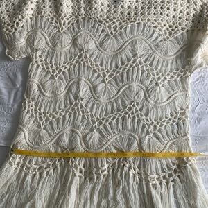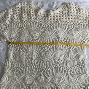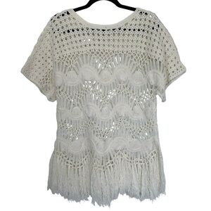 DENIM 24/7 Women’s Cream Sweater Detailed Soft Crochet Fringe Short Sleeve L