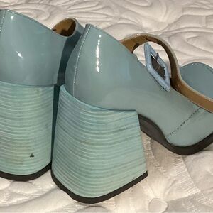John Fluevog Light Blue Patent Mary Jane Platforms