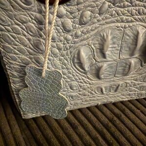 Elevate your style with this chic blue iridescent embossed mini bag. Its unique texture adds a sophisticated touch to any ensemble.