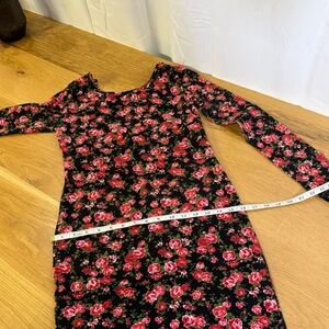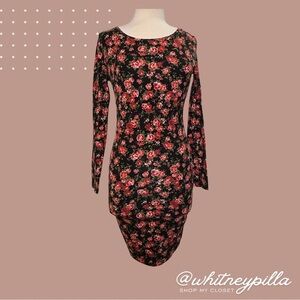 Forever 21 Floral Bodycon Dress Long Sleeve Scoop Back Black Red Roses Large