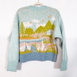 EUC Zara Jacquard Knit Intarsia Countryside Goose Geese Sweater Blogger Favorite.