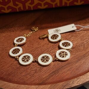 Tory Burch gold and white bracelet fits up to 8 inch wrist