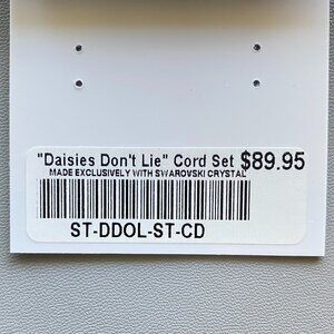 FAC Crystal Daisy Flowers Necklace & Earrings Set, New With Tag in giftable box. Made exclusively with Swarovski crystals, rhodium plated silver tone, lead, nickel & cadmium free, hypoallergenic. Pave clear crystals around the daisy petals, olive green semitransparent gemstone petals, clear crystals on bail, olive green rope cord.