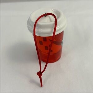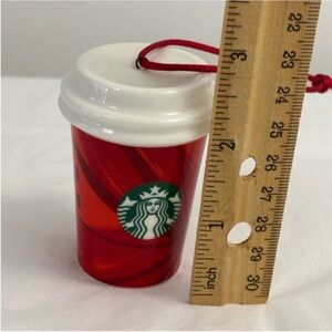 Starbucks 2012 Ornament, Mini 2.5" Christmas holiday ornament, ceramic To GO Cup in red with Snowman graphic, red Starbucks collector ornament