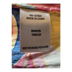 Fabric is a soft, lightweight crinkle rayon blend (85% rayon / 15% nylon)—flowy, breathable.