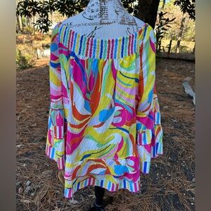 boho blouse, artist print, rainbow top, resort wear, festival style, vacation top, colorful blouse, peasant blouse, smocked neckline, bell sleeve blouse, plus size 1X, airy rayon, spring summer top, coastal style, cruise wear,boho, festival, resort chic, coastal vacation, bright spring, artsy, retro swirl, , cruise wear, beach dinner, brunch day, summer travel