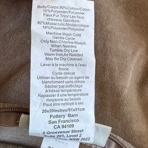 Set of 2 Pottery Barn decorative throw pillow covers. Made with a soft brushed cotton-blend center and framed by plush faux fur trim, these covers bring a refined lodge, cozy neutral, quiet luxury, and modern farmhouse aesthetic to any room.