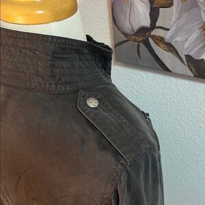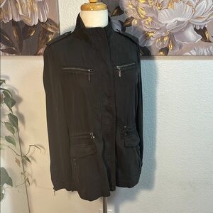 Full Zippered Closure in Soft Silver Tone Embossed Zipper Pulls and Accents