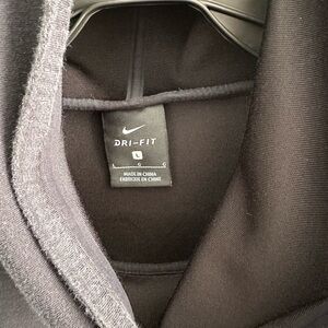 Comfortable black Nike hoodie with Dri-FIT technology. Ideal for workouts.