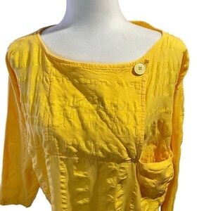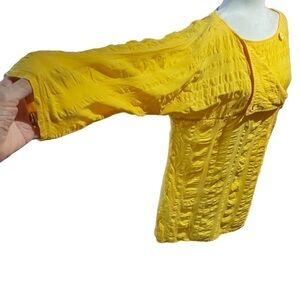 Bright Sunny Yellow Textured Top with Fold over neckline-slits on sides-Size 12