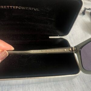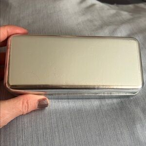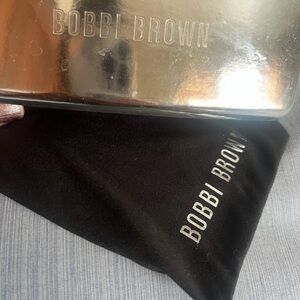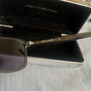 Nice & stylish Bobbi Brown black & gray +2.50 readers with drawstring black cloth bag & silver, black soft fabric lined case. Glasses, The Highlines, in excellent condition, magnifier lines at the bottom of the lenses. Bag & case in good condition. Case, due to its shininess, hard to get clear pics. Case has some scuffs on it but is still useable & looks decent. Nice set. From a smoke free home.