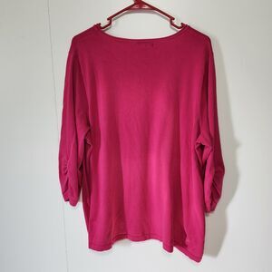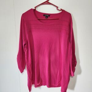 Roz & Ali Pink Cinched Sweater Top 3/4 Sleeve Yoke Detail Plus Size 3X