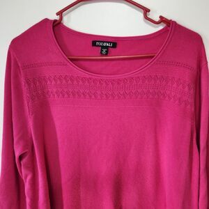 Roz & Ali pink sweater top plus size 3X women cinched waist 3/4 sleeve yoke detail Dressbarn rebrand work casual classic flattering