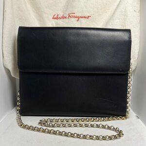 Salvatore Ferragamo Vintage Black Leather Flap Chain Link Shoulder Crossbody Bag