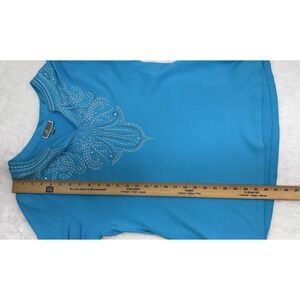 JM Collection Embellished V Neckline Popover Top 3/4-Sleeve Turquoise Size L