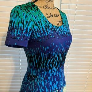 Belle Badgley Mischka Sz 2 Dress Blue Green A Line Flare Starry Night Art Wear