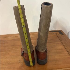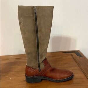 Chic leather boots with leather accents. Ideal for stylish outings. Zipper entry. Good condition
