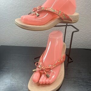 Stylish VIONIC coral flip flop sandals featuring a bow accent.